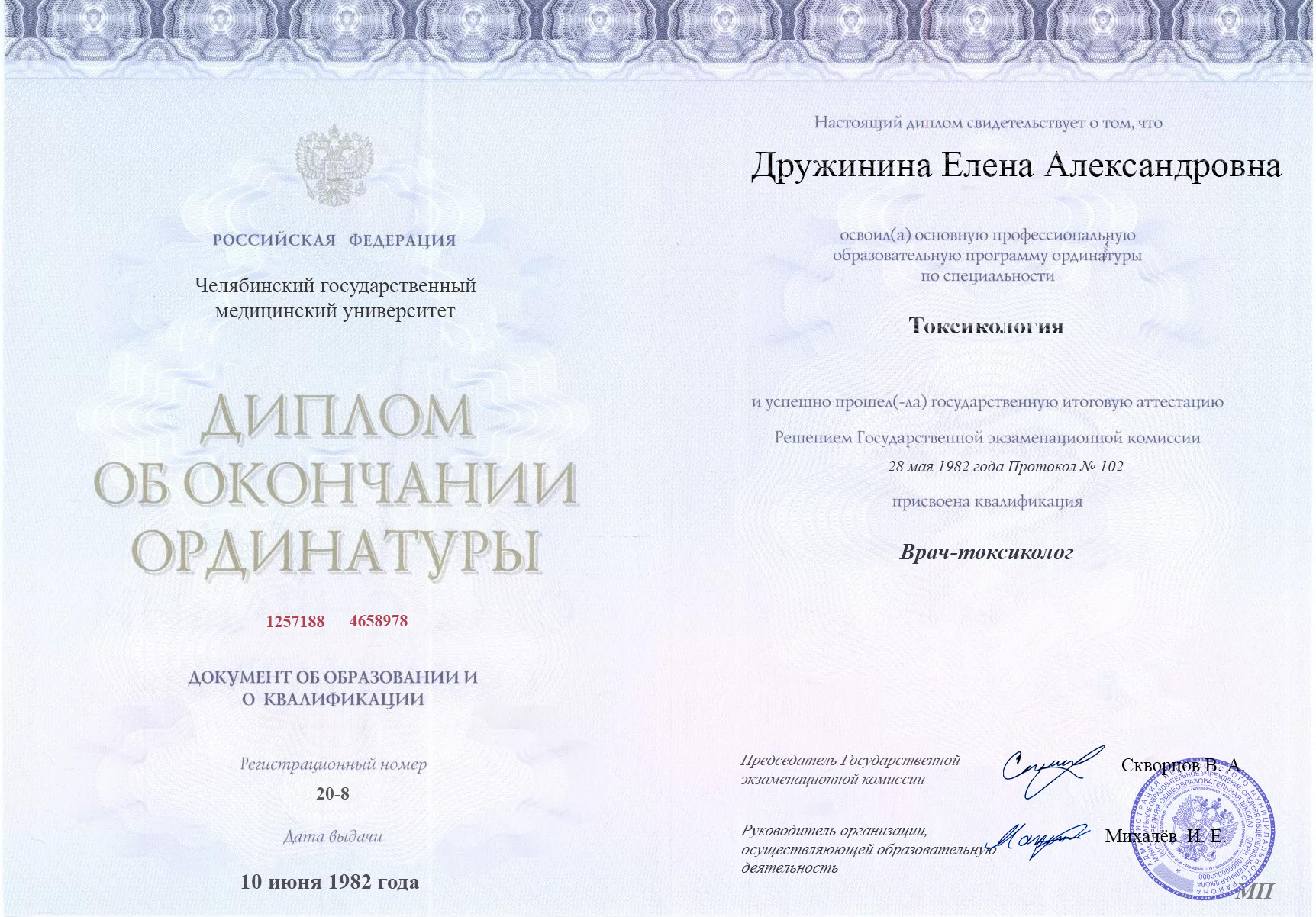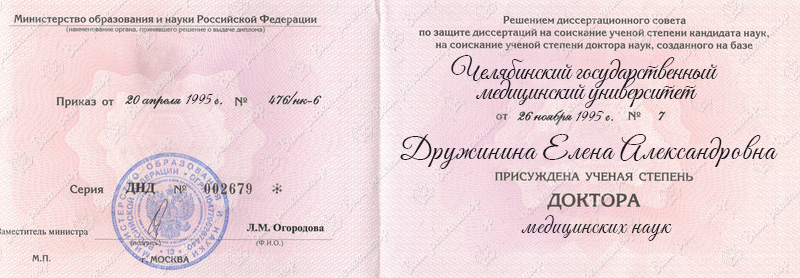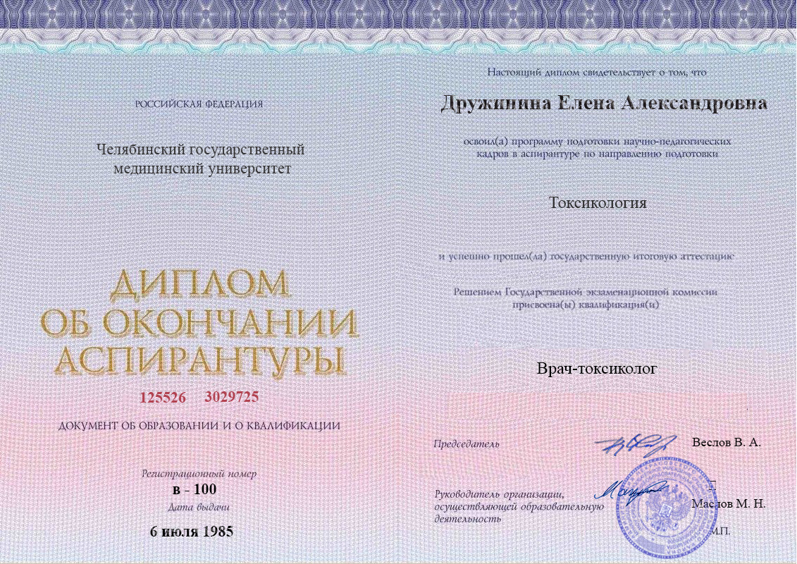 ВУЗ: Челябинский государственный медицинский университет, 1979 г.
